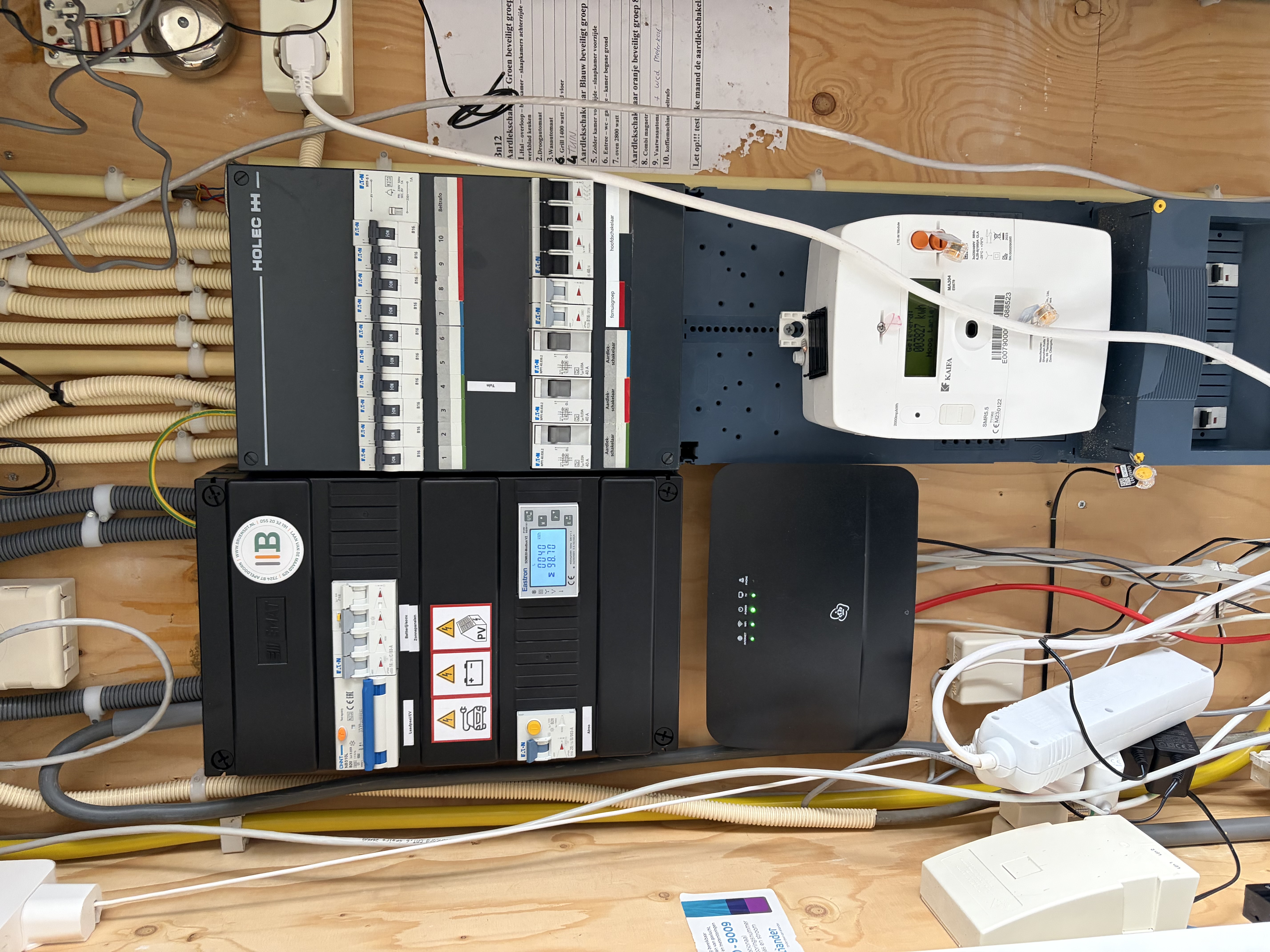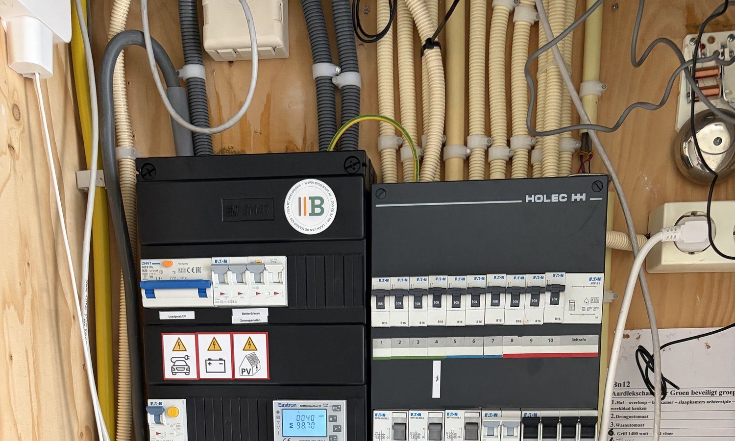 In Apeldoorn hebben we een Sigenergy Sigen EV AC Charger 11 kW aan de muur geïnstalleerd. Voor veilig en krachtig laden is een groep in de meterkast geplaatst, inclusief aardlekautomaat, extra groepenkast en 5x4 mm2 bekabeling. Dankzij het aanwezige Sigenstor-systeem is dynamic load balancing eenvoudig te activeren, zonder extra materialen. Zo kan er efficiënt, veilig en ook met zonne-energie geladen worden.