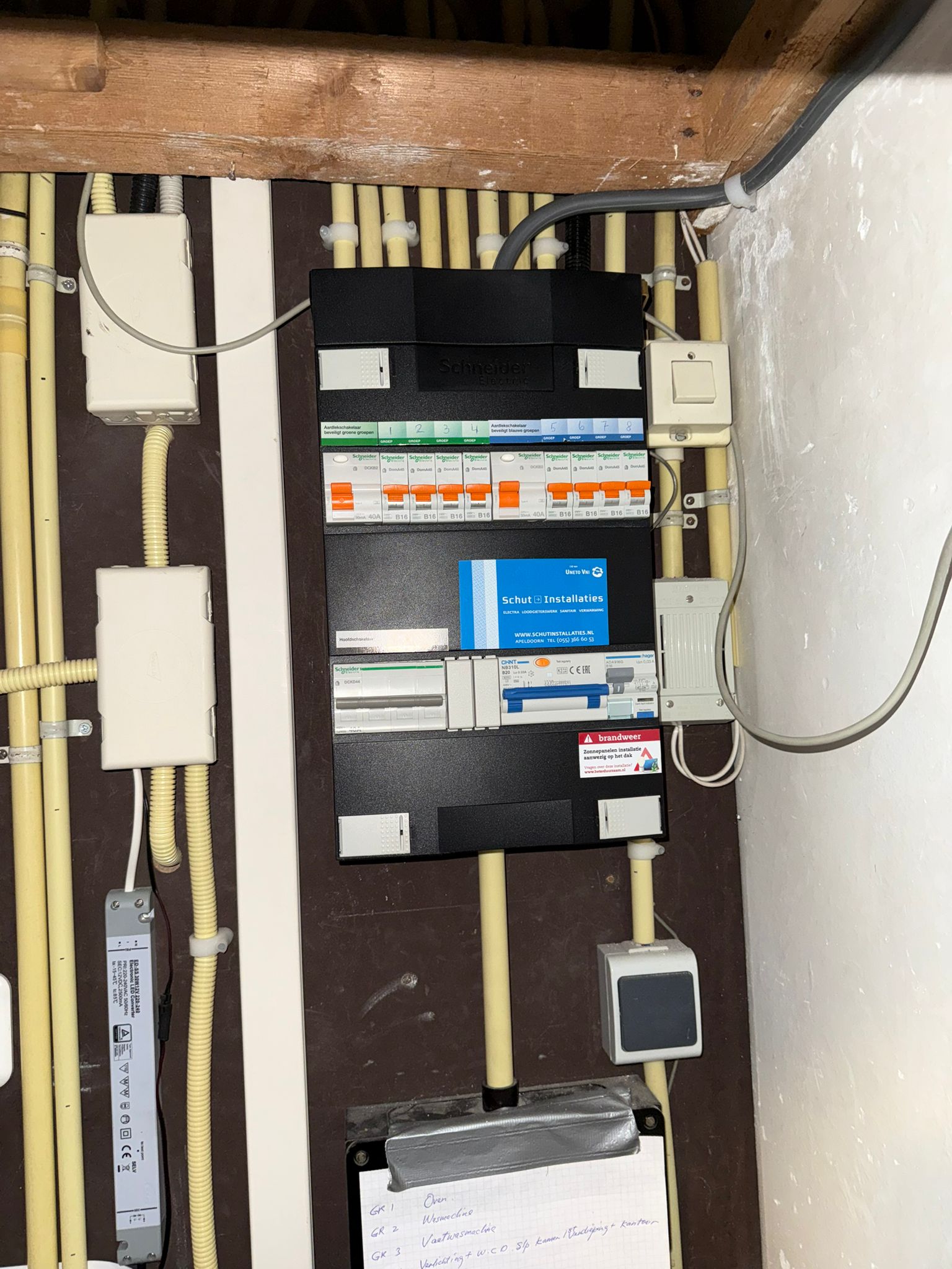 In Apeldoorn installeerden we een Peblar Home laadpaal (11 kW) met vaste 5 meter kabel, geplaatst op de plek van de brievenbus. De voedingskabel is strak door de muur doorgevoerd zodat deze direct in de groepenkast uitkomt. Daar hebben we een nieuwe, beveiligde groep aangelegd met een 3P+N aardlekautomaat (20A/30mA) voor veilig laden. Met een HomeWizard P1 meter is loadbalancing en slim laden mogelijk: snel laden zonder overbelasting van de aansluiting.