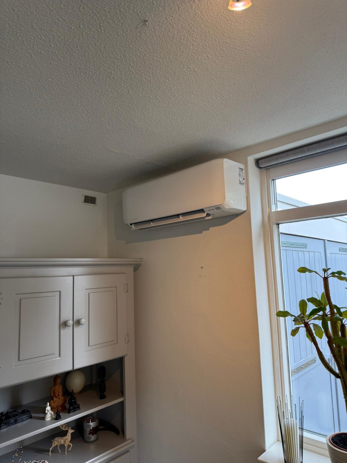 In een gezellig huis te Apeldoorn hebben wij een hoogwaardige Mitsubishi SRK single-split airco van 3,5 kW geïnstalleerd. De binnenunit is strategisch geplaatst voor optimale koeling, terwijl de buitenunit trillingsvrij boven de garage hangt. Dankzij onze zorgvuldige elektrotechnische installatie, inclusief een nieuwe groep en betrouwbare Eaton automatisering, geniet men van comfort en lagere energiekosten. Wij waarborgen persoonlijke aandacht en kwaliteit, waardoor elke zomer koel en aangenaam blijft.