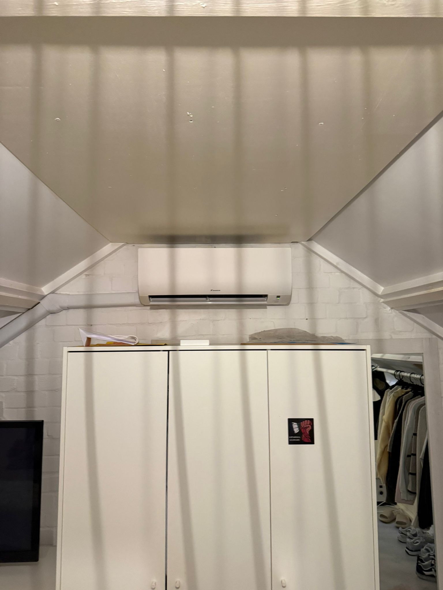 In Twello realiseerden we een Daikin multi-split aircosysteem met een 5,0 kW unit in de woonkamer en een 2,0 kW unit op zolder. Beide ruimtes zijn nu efficiënt te koelen én te verwarmen, met bediening via afstandsbediening en wifi. De buitenunit is op een wandbeugel op hoogte geplaatst, slim met het oog op toekomstige ruimte buiten. Dankzij nette leidingroutes, een condenspomp en een eigen groep is dit een verzorgde en betrouwbare installatie.