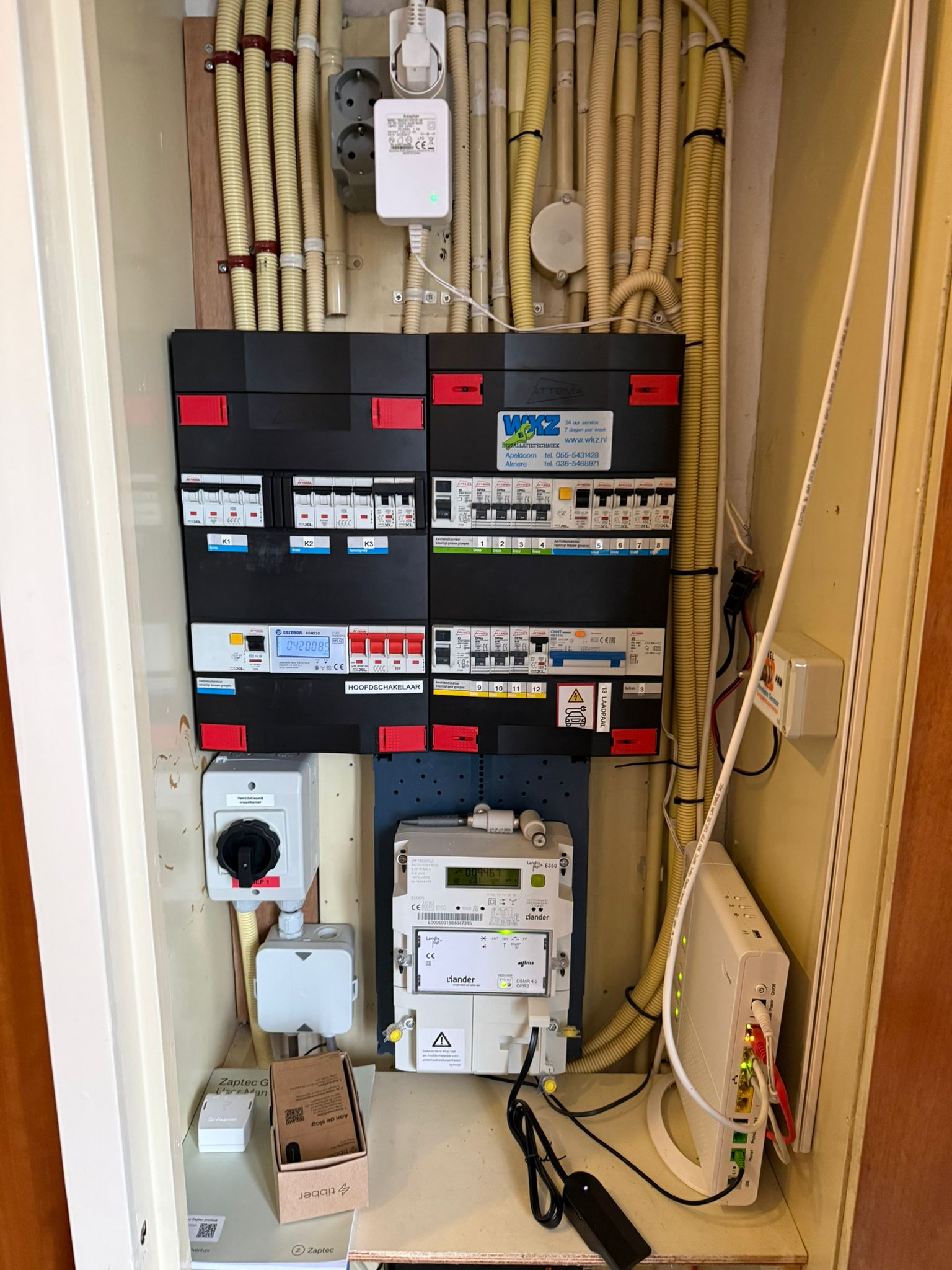 In Apeldoorn hebben we een Zaptec Go 2 laadpaal van 22 kW geplaatst in de kleur Asphalt Black. Voor een veilige en nette installatie is in de groepenkast een nieuwe 3-polige aardlekautomaat toegevoegd. Dankzij de aangesloten Tibber Pulse profiteert deze laadoplossing van load balancing en slim laden op zonne-energie. Zo wordt overbelasting voorkomen en kan er efficiënt, snel en toekomstgericht thuis geladen worden.